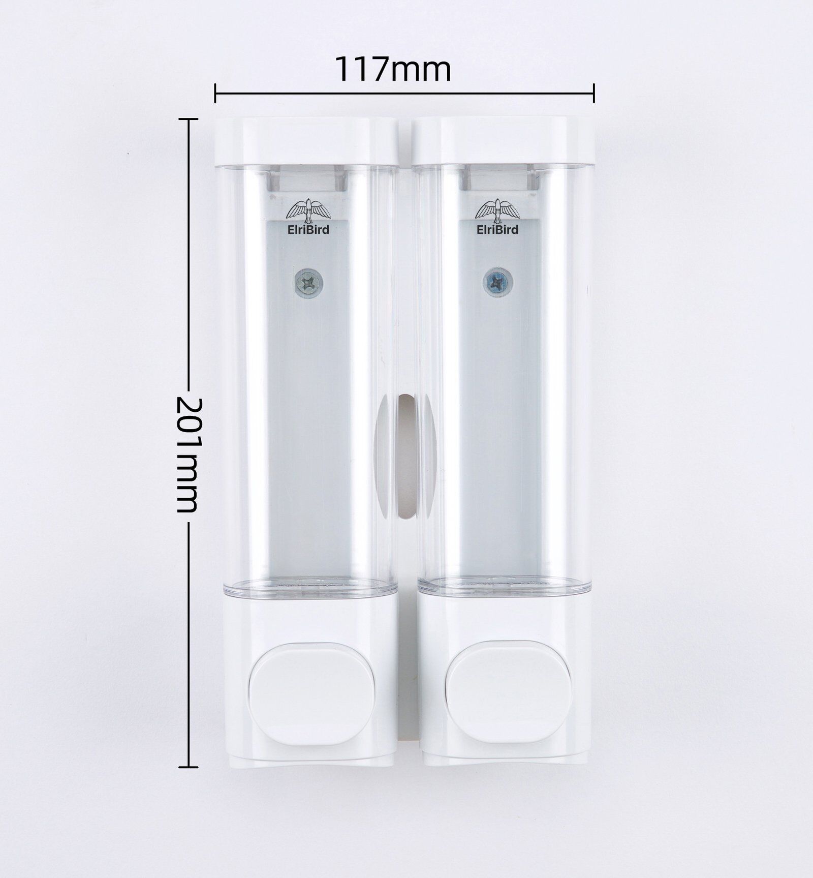 ElriBird Is Introducing our White Transparent Shampoo Dispenser, made from high-quality ABS material, this dispenser is designed to provide a convenient and efficient solution for your daily shower routine. Its sleek and modern design allows it to blend seamlessly with any bathroom decor, while its clear body lets you see exactly how much shampoo is left in the dispenser.